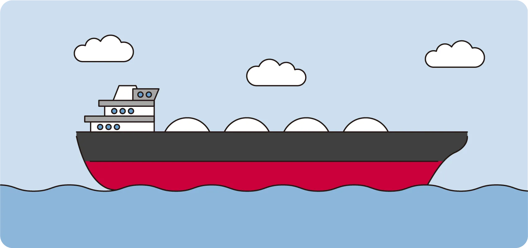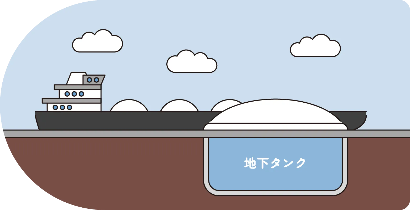 都市ガスの原料である天然ガスは、冷却され、LNG(液化天然ガス)の状態で輸入されます。