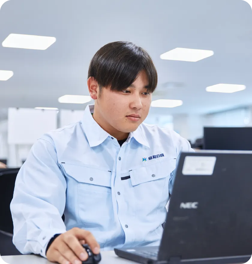 私が就職活動の際に軸にしたのは、「人の役に立ちたい」ということです。幼い頃からずっと、公共性の高い仕事をしていた父の姿を見て育ったので、自分も社会への貢献を実感できる仕事に就きたいと考えていました。暮らしを支える公共インフラに興味を持ち、関連事業を展開している会社を探す中で協和日成に出会ったのです。会社説明会に参加したのをきっかけに先輩社員の方々の話を聞いて、ガス・電気・水道といったライフラインを支える多彩な事業内容や、社内の雰囲気が良く働きやすいことに大きな魅力を感じました。ガス管の新設や交換を行うガス導管の現場なら、仕事のやりがいや達成感を得られるはず、と考えたことが入社を決意した理由です。給与や休日休暇、福利厚生などの待遇面が手厚いことも大きな安心材料になりました。