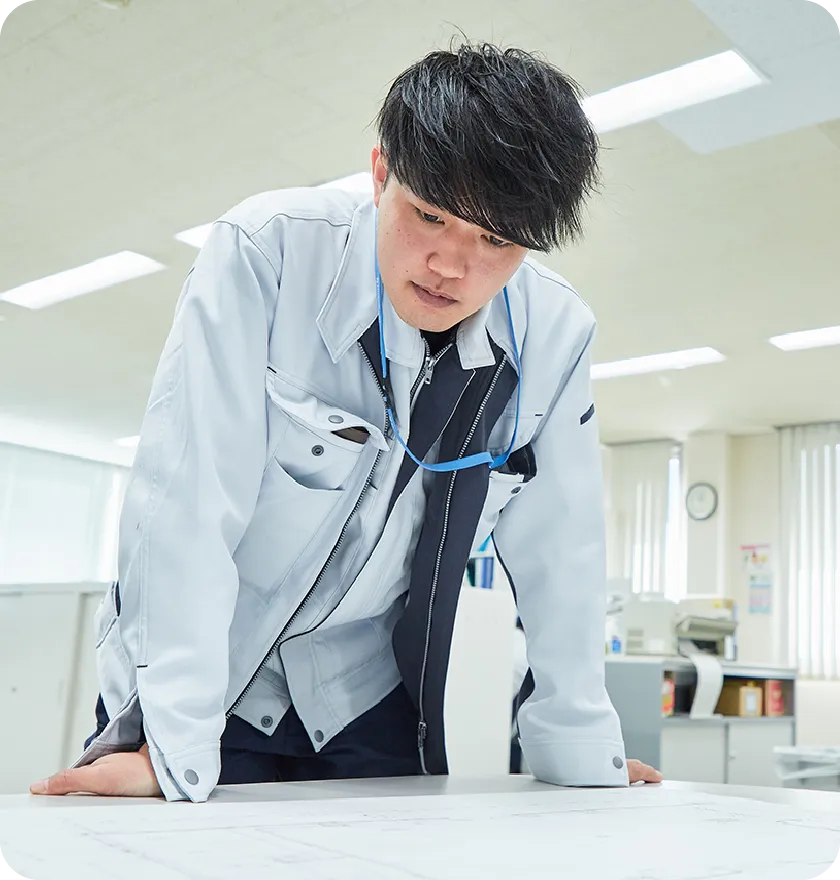 まだ先輩に教わることが多く、一人前に成長するにはもう少し時間がかかりそうですが、お客様に信頼され、会社の成長に貢献できる人材になりたいと考えています。将来、自分がリーダーとして組織を動かしていく姿はイメージできませんが、知識と技術を磨いて自信がつけば、少しずつ意識が変わるかもしれません。まずは、一級内管設計士の資格を取得して、少しでも早く先輩方に追いつくことが目標です。そのうえで大規模物件の仕事に関わり、竣工した建物を見た時に味わう達成感を今から楽しみにしています。暮らしを支える当社の使命に共感できる人は、ぜひ一緒に働きましょう。