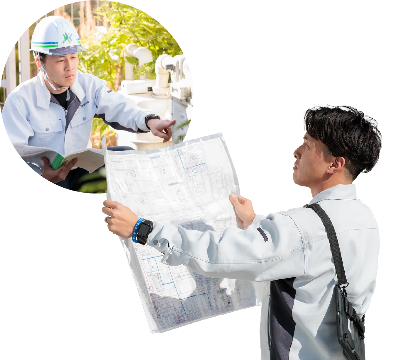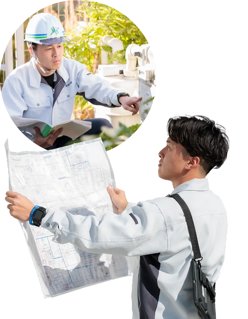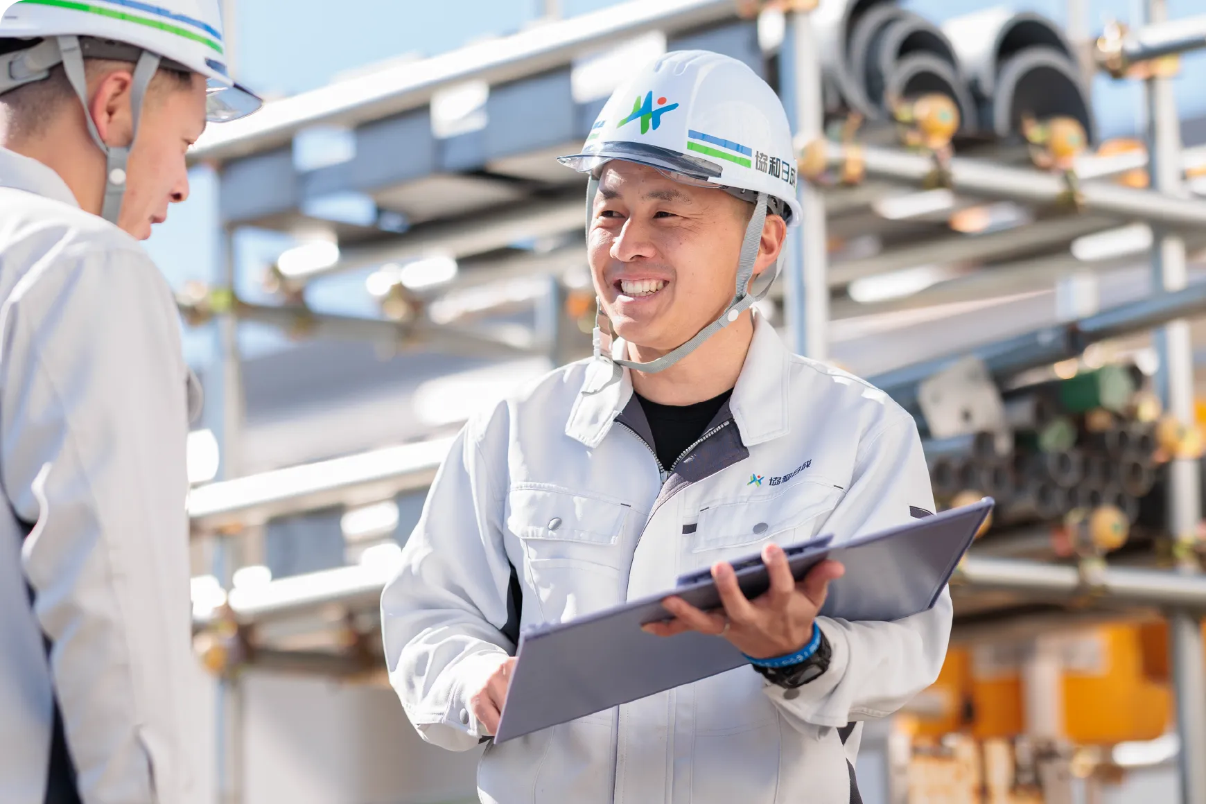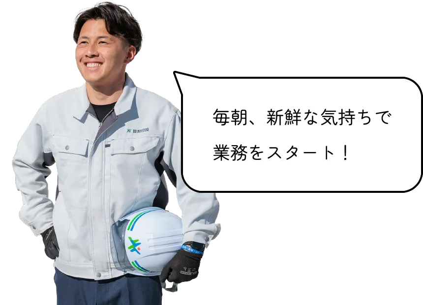 施工管理職のとある1日に密着。 - ガスの配管を中心に上下水道や空調設備など、毎日の暮らしを支えるさまざまなライフラインに貢献している協和日成。その現場をまとめ、安全と品質を守っているのが施工管理職の社員たちです。責任と誇りを持って業務に取り組む施工管理職の1日に密着し、その仕事内容について詳しくお伝えします。
