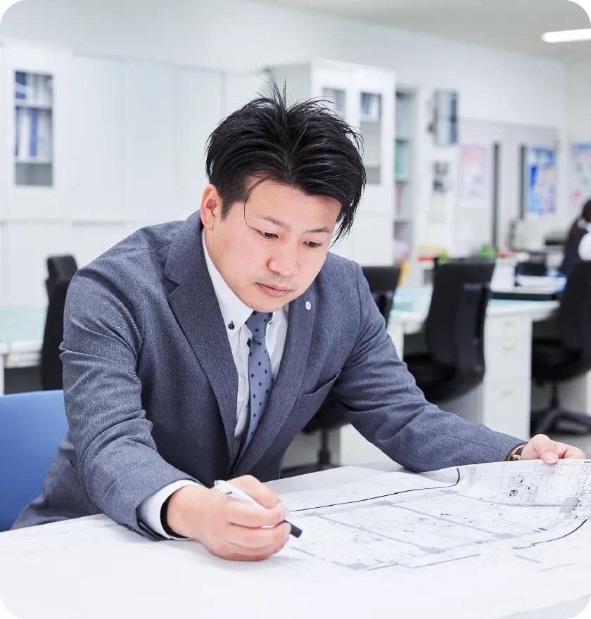 営業の仕事はお客様への提案から工事の積算、図面作成、現場での打ち合わせなど多岐にわたっています。どこまでやるかは営業担当のスタイルによって変わりますが、私はなるべく現場に行って監督や協力会社の方々とコミュニケーションをとり、状況を確認しています。責任をもって現場を見てくれるという安心が、お客様からの信頼につながるからです。