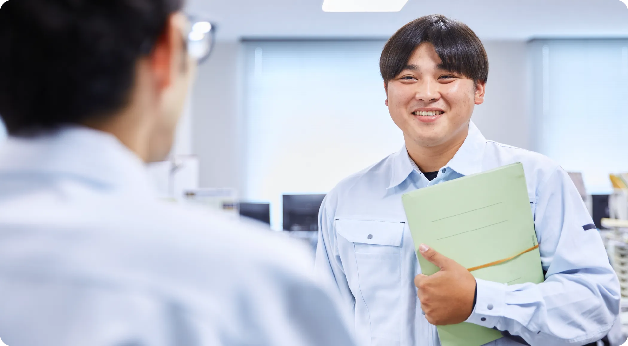 私は文系出身なので、入社するまでガス導管に関する知識は全くありませんでした。でも、当社は新人研修や資格取得のサポートが充実していて、未経験者をフォローしてくれる体制がしっかり整っています。先輩や上司とのコミュニケーションも取りやすいので、わからないことはすぐに聞いて確認できる職場の雰囲気にも助けられました。