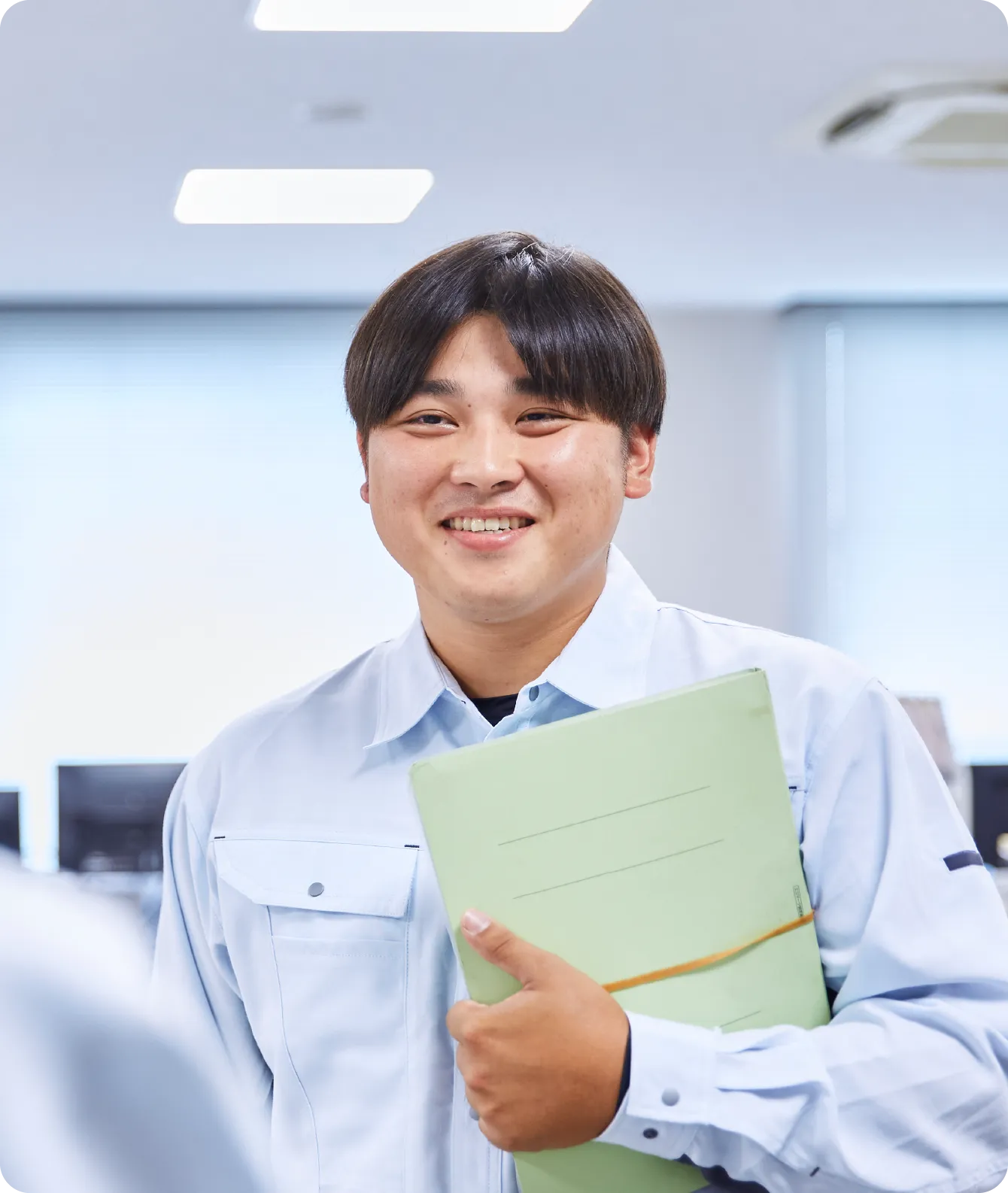 将来の目標は、自分がゼロから先輩や上司の方々に教えてもらったように、後輩を導くのに十分な知識や経験を身に付けることです。出身学部に関係なく、公共インフラや社会貢献に興味がある人は、ぜひ当社を志望してほしいと思います。暮らしを支える喜びを分かち合いながら、ともに働きましょう。