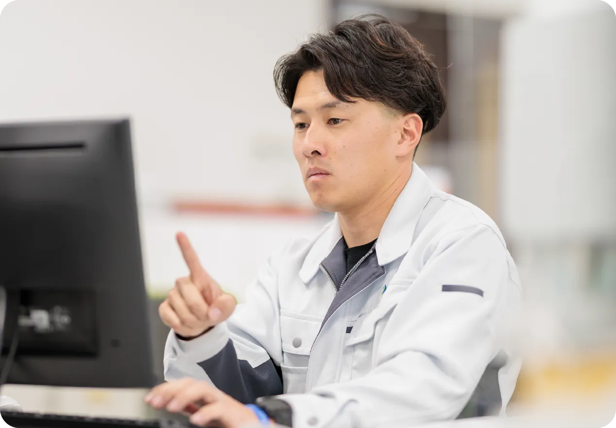 事務所に着いたら、現場を回っている間にPCに届いたメールをチェックします。工程に関するメールが多いので、確認漏れがないように気を付けながら図面を見て、現場の状況を把握して工程を整理します。