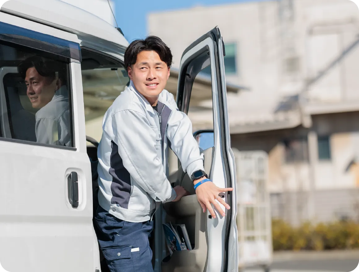 必要な資料や道具を用意したら、乗り慣れた社用車で事務所を出発します。朝の通勤時間帯は渋滞に巻き込まれることもよくありますが、あせらずに安全運転を心がけて現場に向かいます。